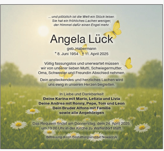 Sprechen Sie im Kondolenzbuch den Hinterbliebenen Ihr Beileid aus und teilen Sie persönliche Gedanken und Erinnerungen mit anderen.